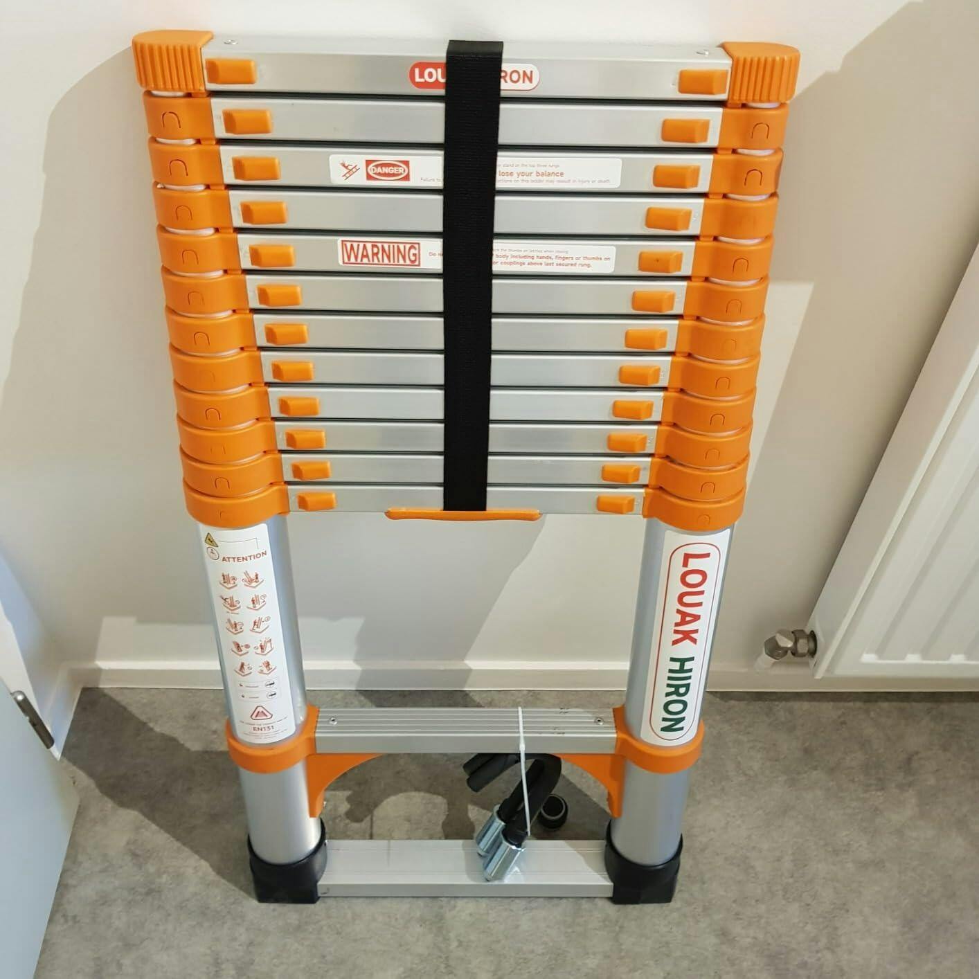 Térkímélő teleszkópos kialakítás: Kisméretre zárható sima mozdulattal, könnyen elhelyezhető szekrényben, garázsban vagy autó csomagtartójában. Nem kell többé a hagyományos, terjedelmes létrákkal birkóznia!